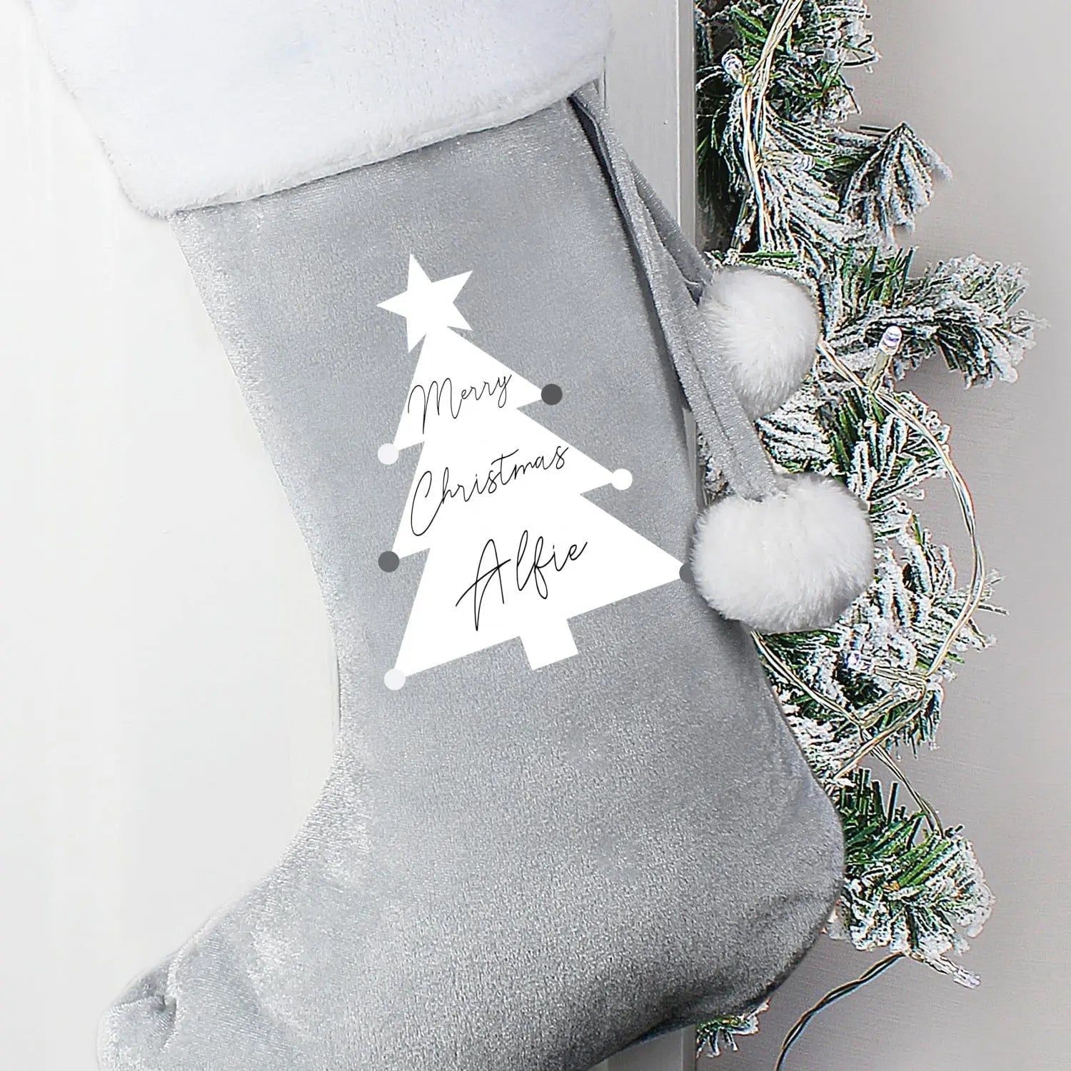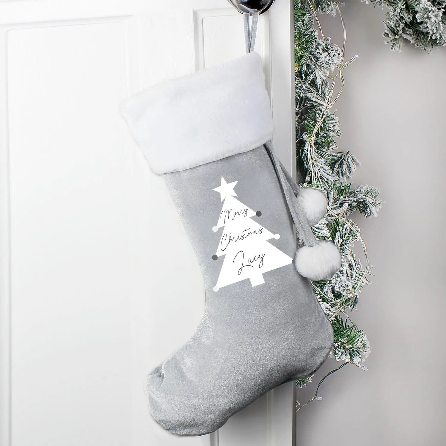 Personalised Christmas Tree Luxury Silver Grey Stocking