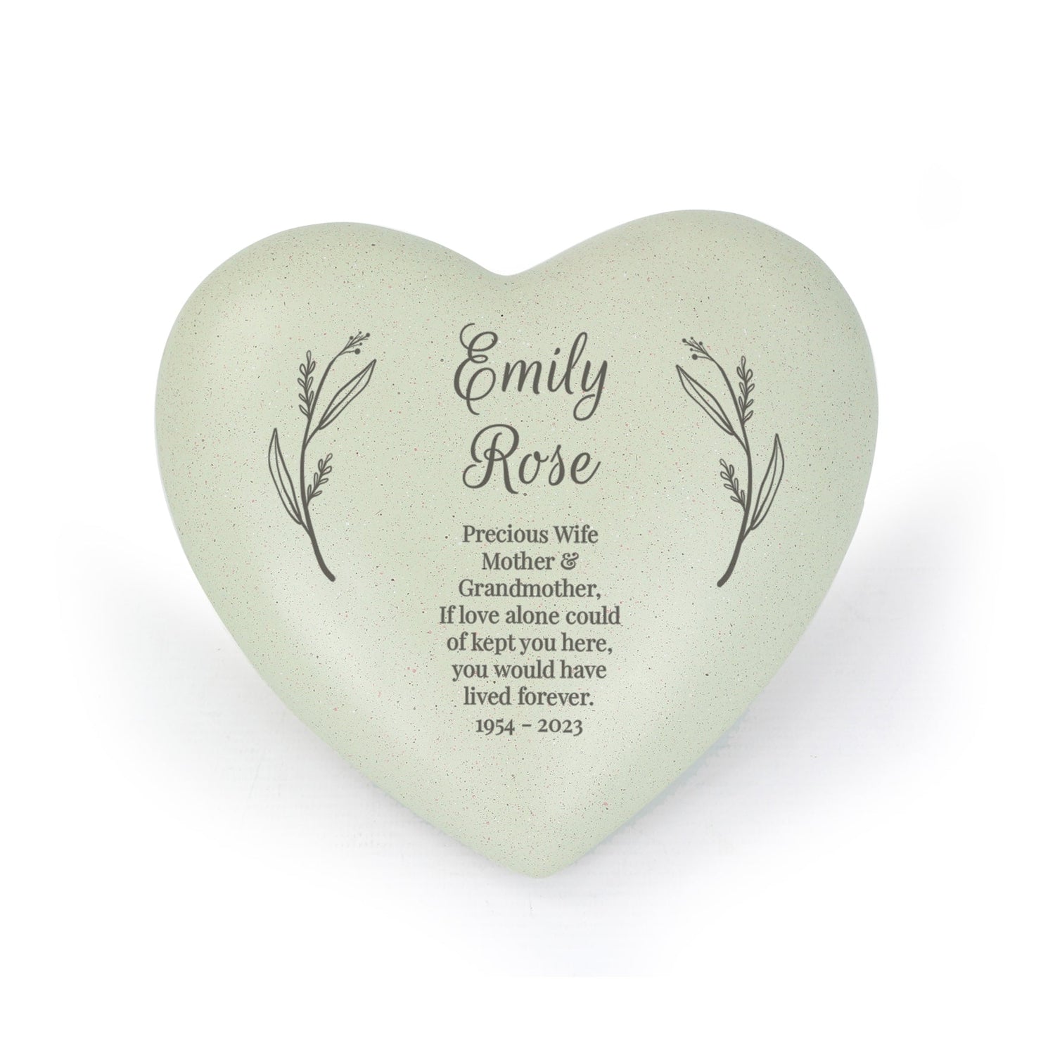 Please note that due to the natural resin material, minor imperfections or blemishes may occur, particularly within the personalised text area. This free text heart memorial offers a unique and heartfelt way to commemorate your loved one.