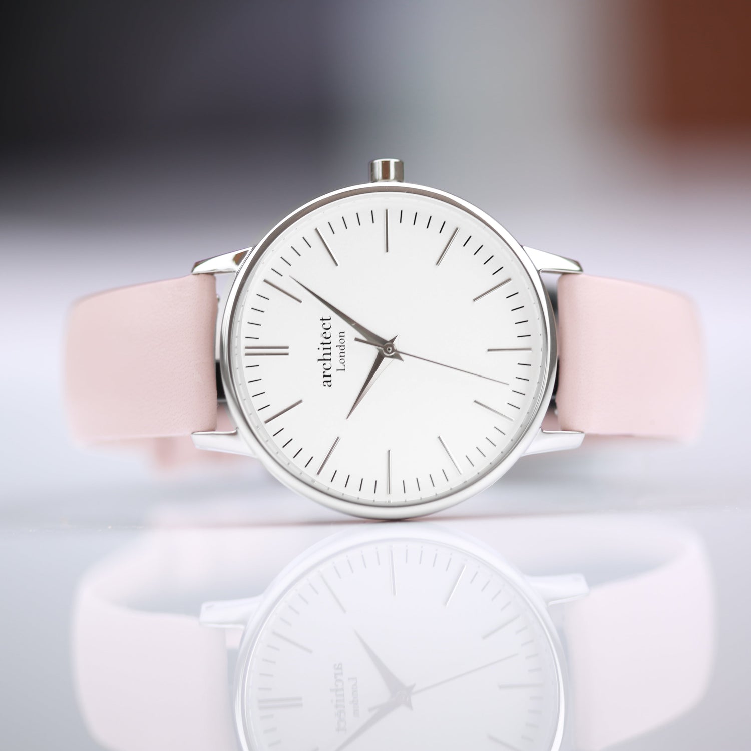 Personalised Architect Blanc Watch Silver Light Pink Strap
