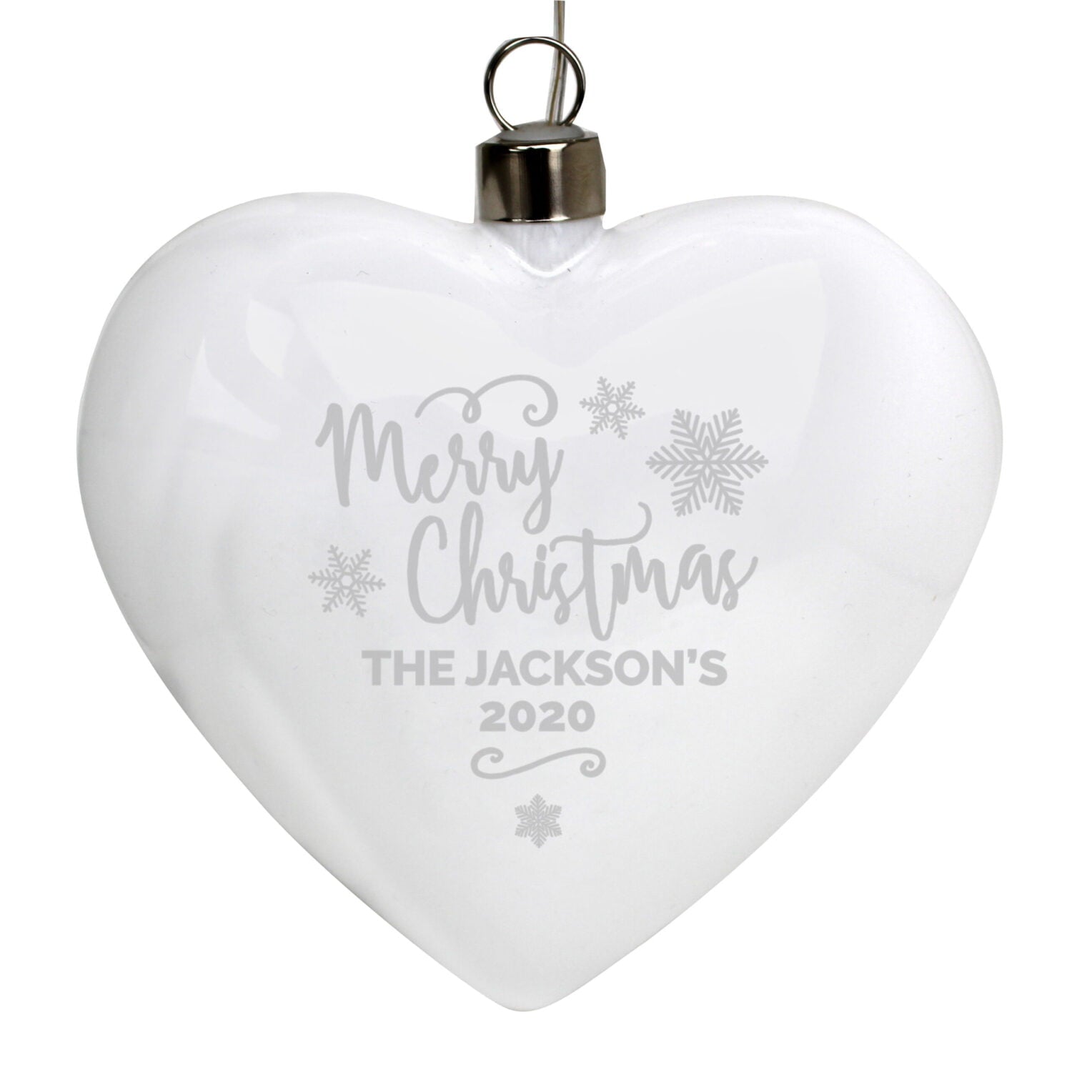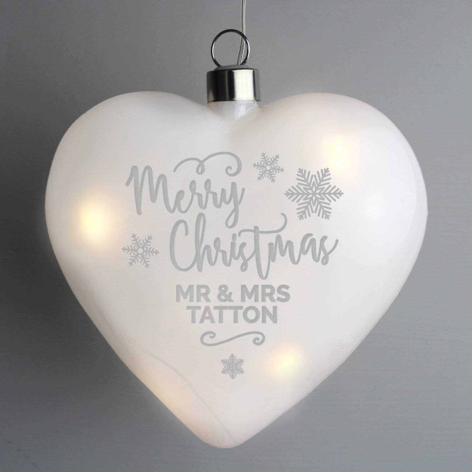 Add a touch of festive magic to your home this Christmas with our Personalised Merry Christmas LED Hanging Glass Heart. This beautiful hand-blown glass heart features a warm LED light, perfect for creating a cosy atmosphere.