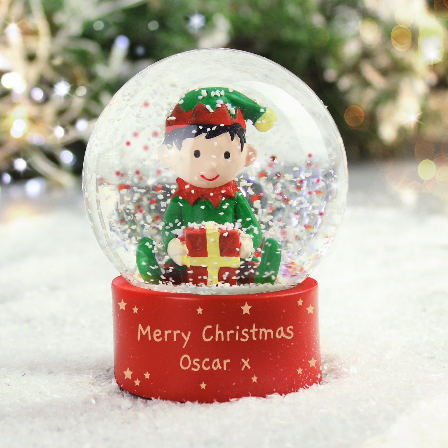 This charming elf glitter snow globe is a perfect Christmas gift for children. Personalise it with two lines of text, each up to 25 characters long, to create a truly unique keepsake.