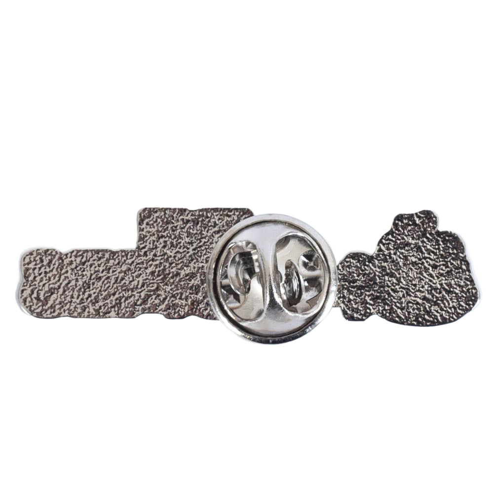 This die-stamped pin badge features a full-colour design and a silver-style metal alloy finish.