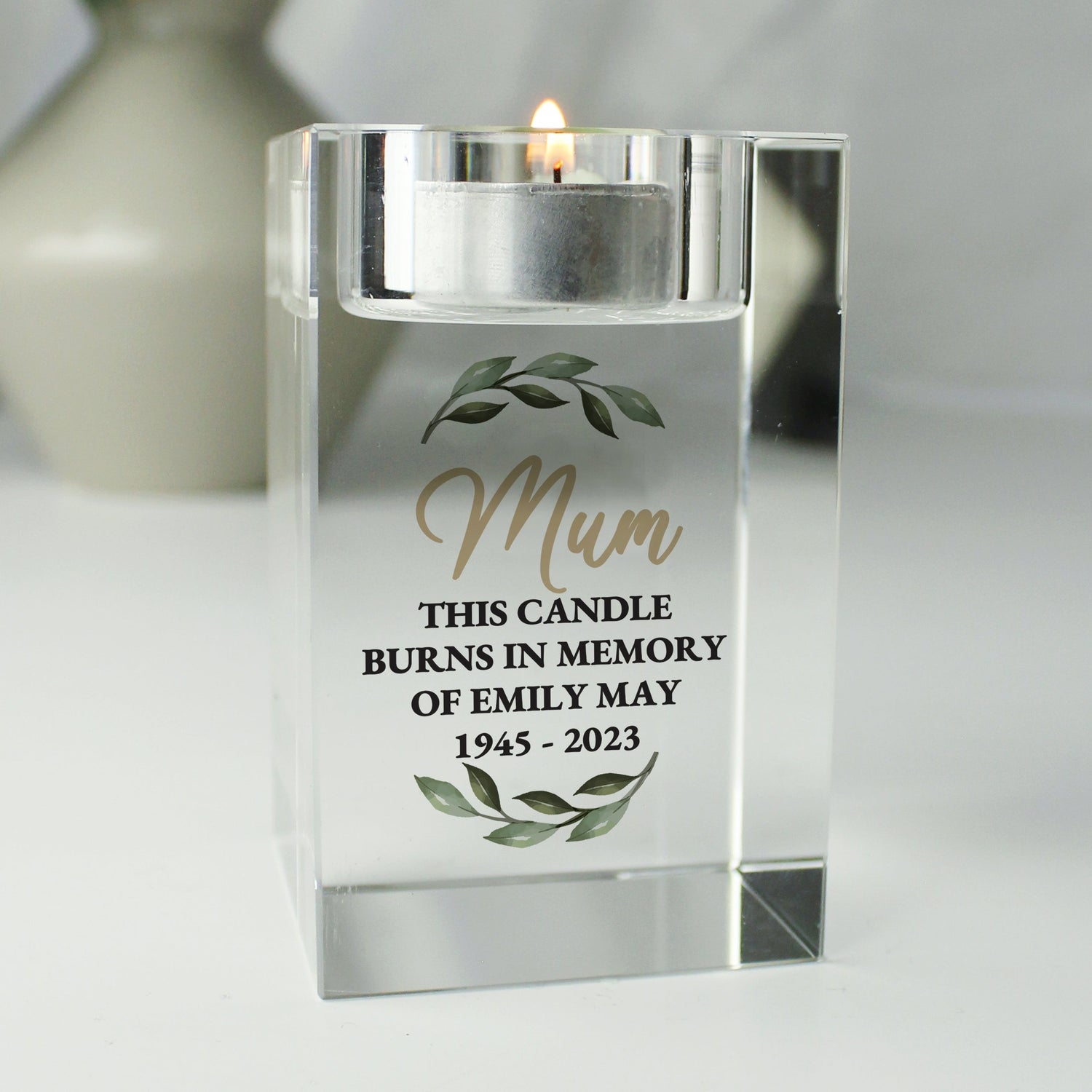 Create a lasting tribute with this personalised botanical memorial glass tealight holder. This elegant glass tealight holder offers a beautiful way to remember a loved one.