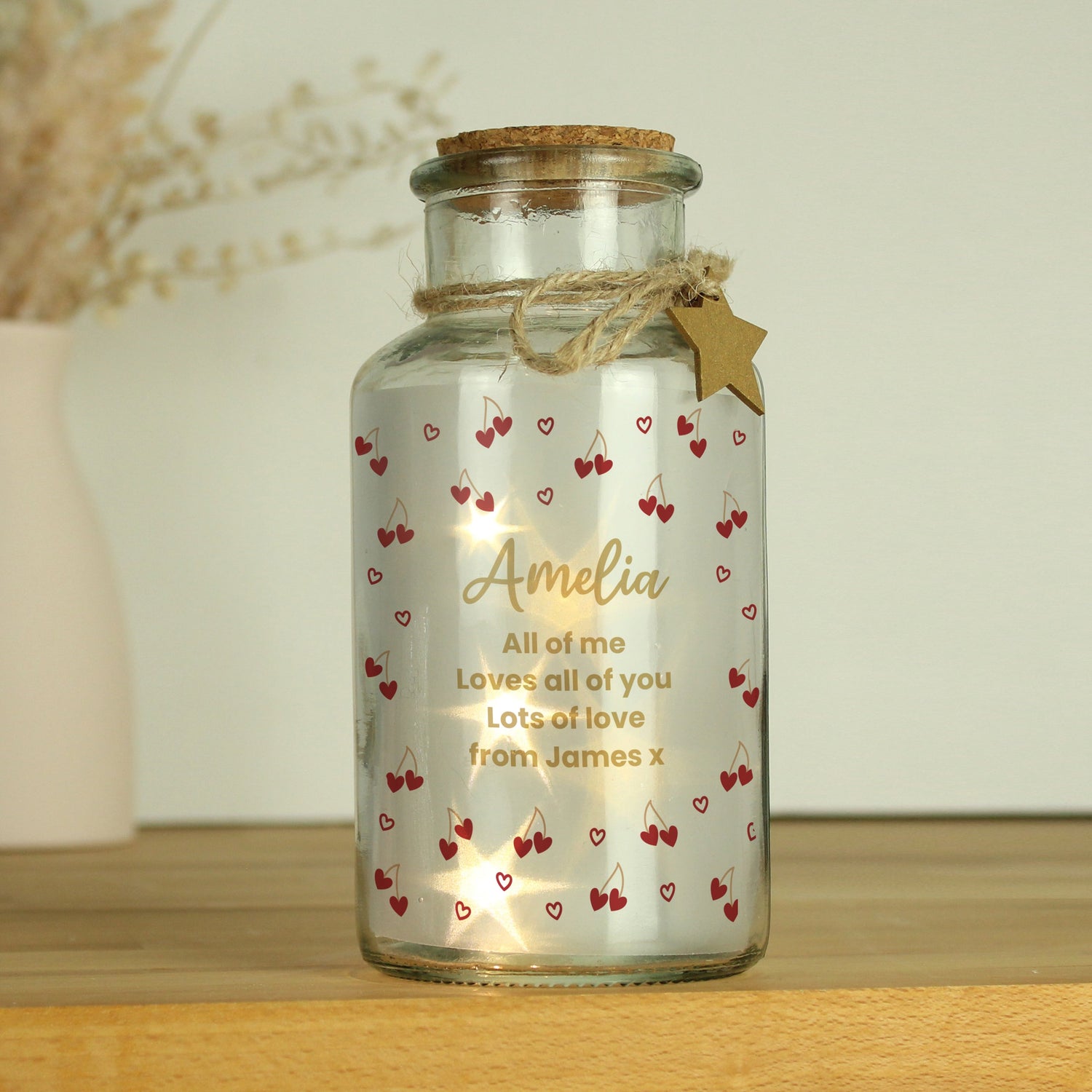 Personalised Cherry Hearts LED Jar