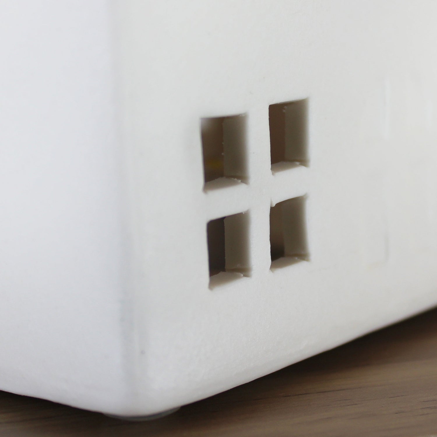 Create a cosy festive atmosphere in your home with this delightful ceramic LED light-up house. Featuring delicate cut-out windows, it glows softly when switched on, bringing a touch of Christmas magic to any space. Personalise your house with a special message across four lines to make it truly unique. With compact dimensions of 13cm wide, 10cm tall and 7.5cm deep, it fits perfectly on a mantelpiece, shelf or windowsill. Easy to use with a simple on/off switch and batteries included, it makes a thoughtful gift or charming addition to your holiday décor.