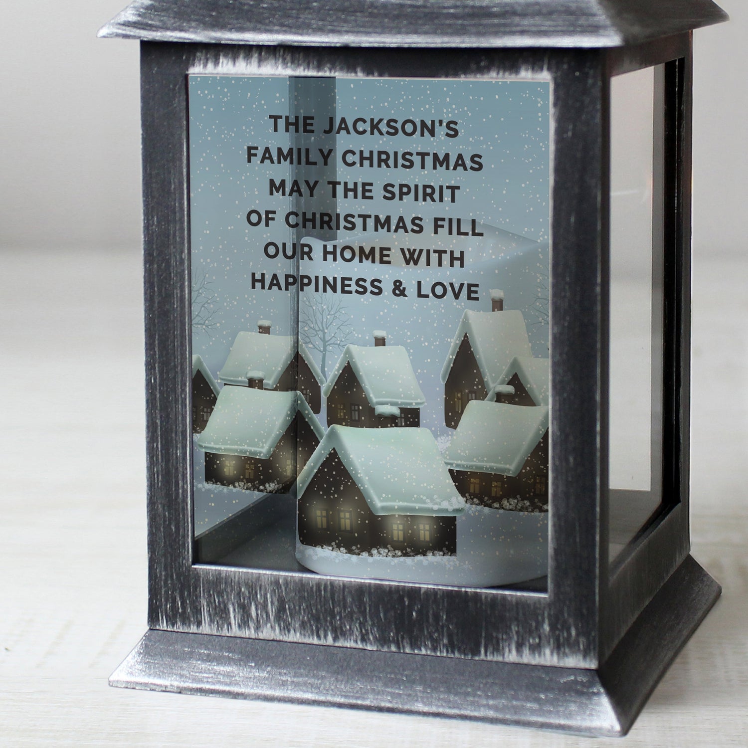 Personalised Christmas Town Black Lantern