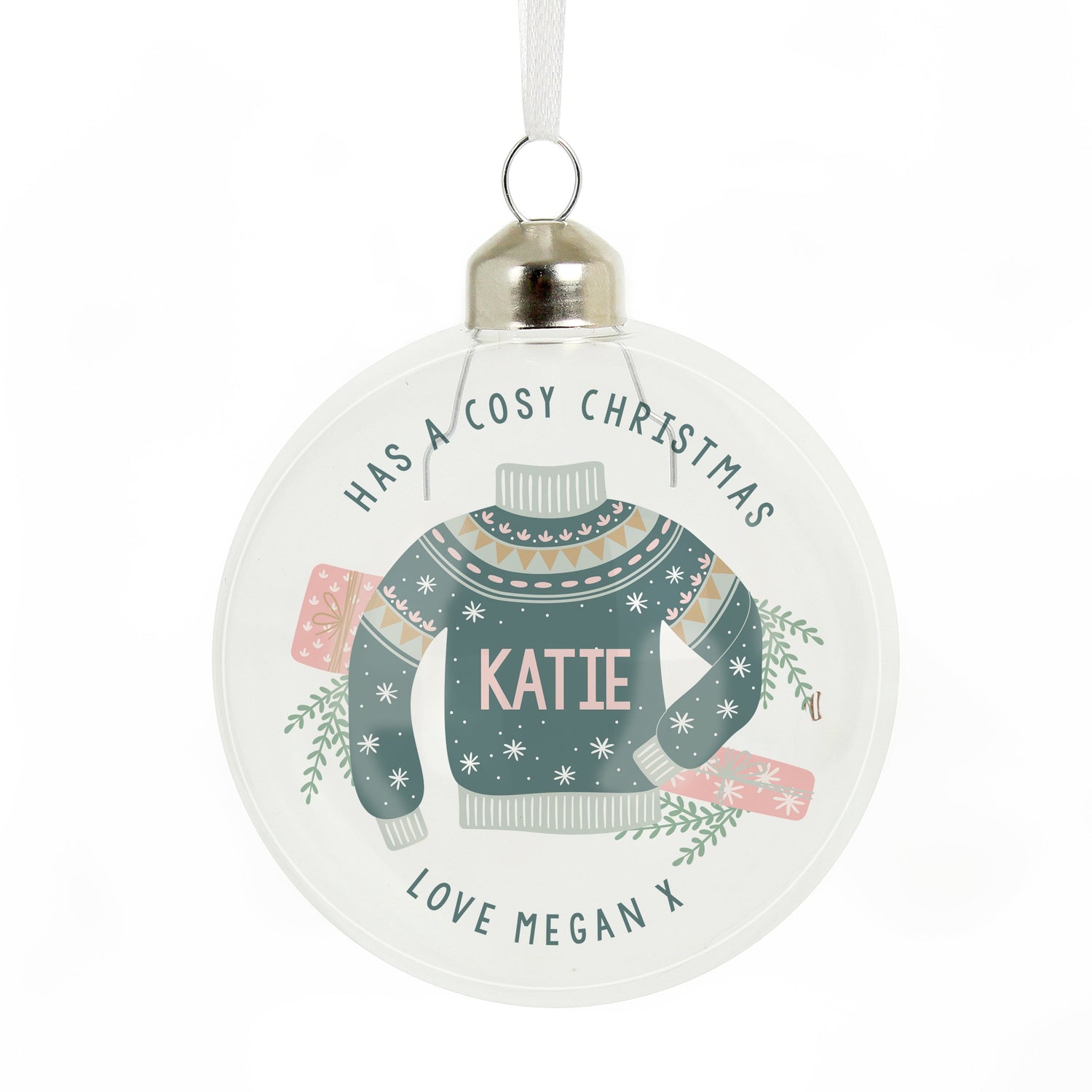 Personalised Cosy Christmas Glass Bauble