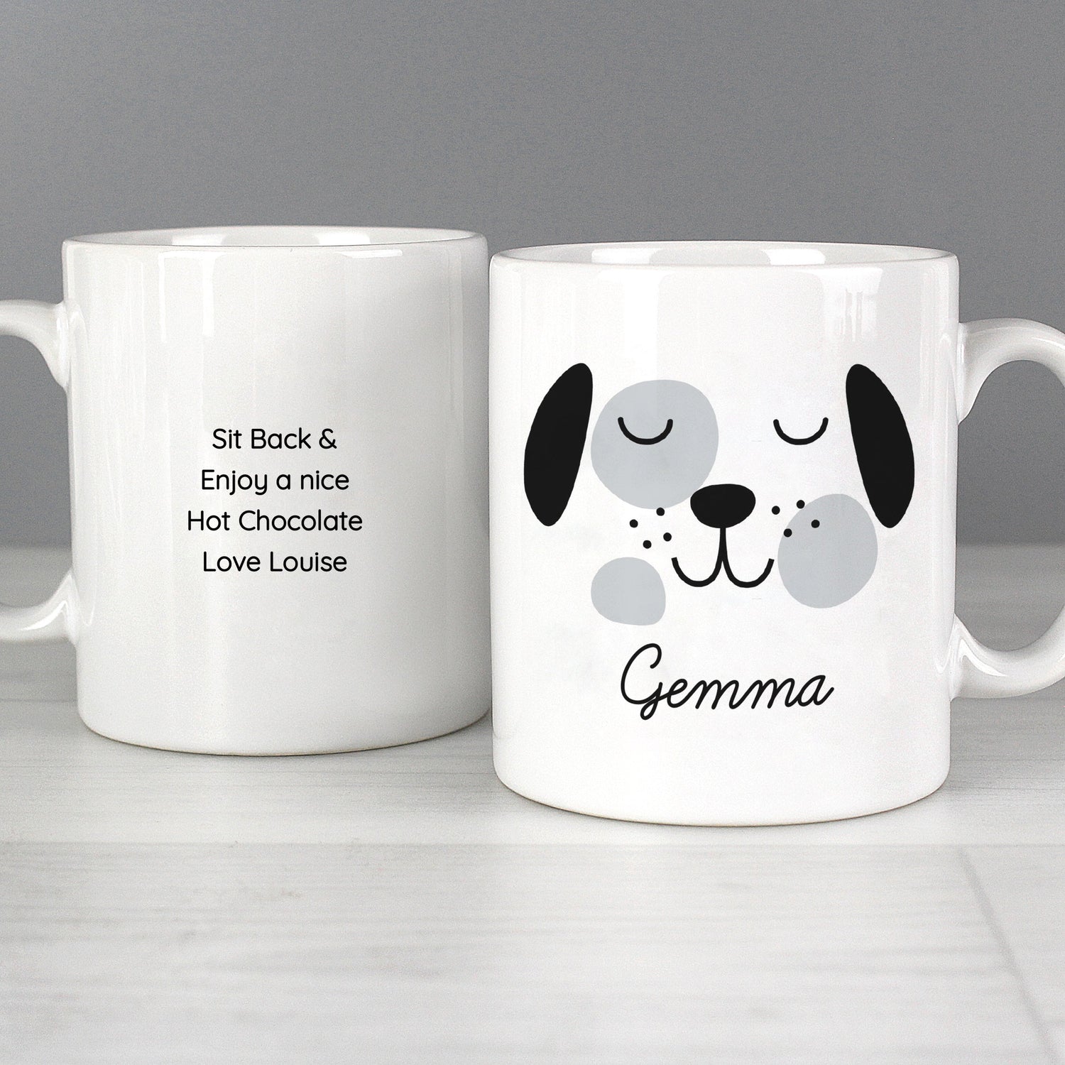 Show your love for your furry friend with this personalised cute dog face mug. Perfect for coffee, tea, or hot chocolate, this ceramic mug makes a thoughtful gift for any dog lover.