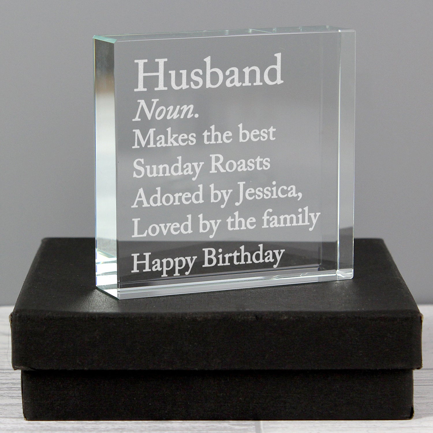 Beautifully presented in a black gift box, this personalised definition crystal makes a stunning home décor piece or memorable keepsake. A perfect blend of style and sentiment, making it an ideal personalised definition crystal gift.