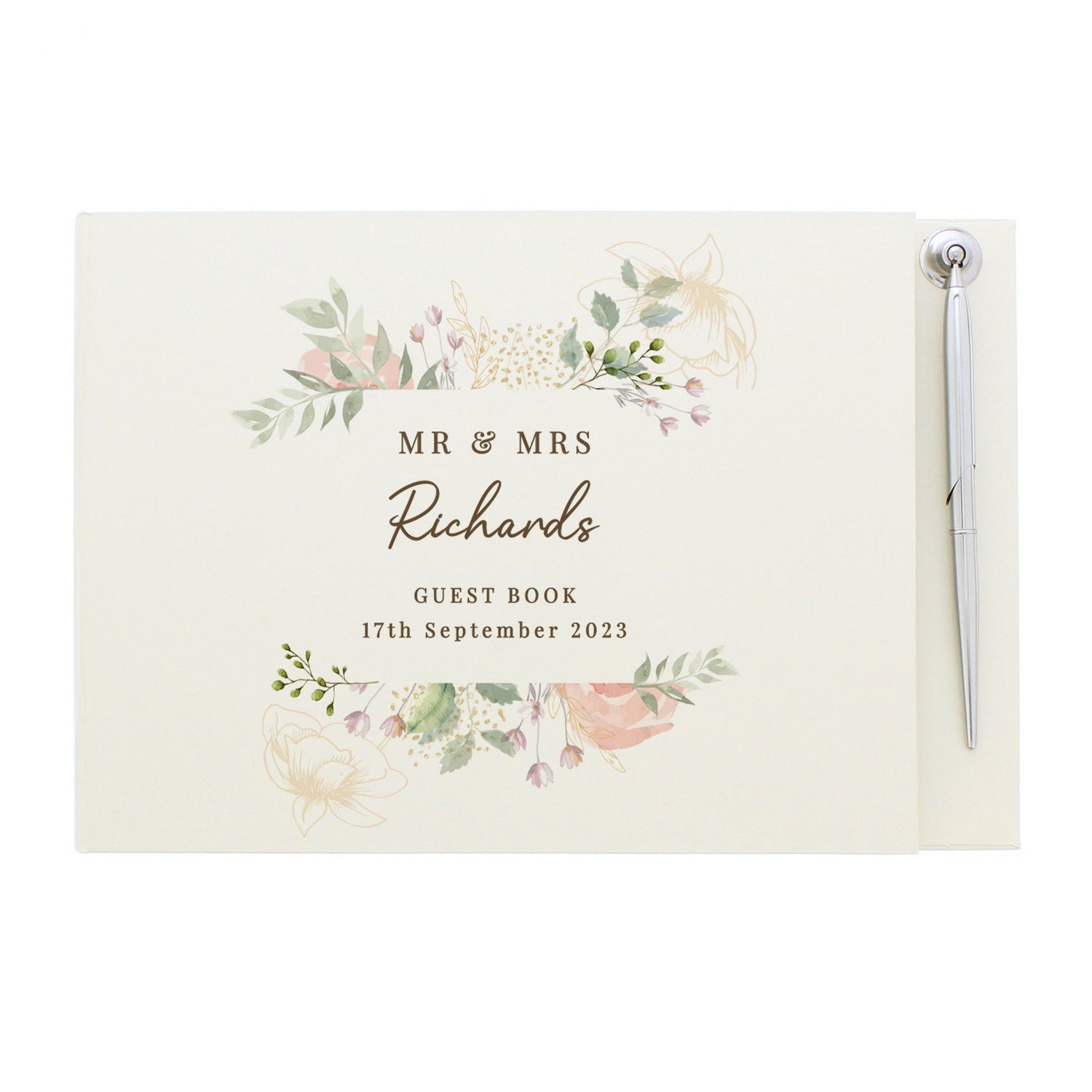 Personalised Floral Watercolour Hardback Guest Book & Pen