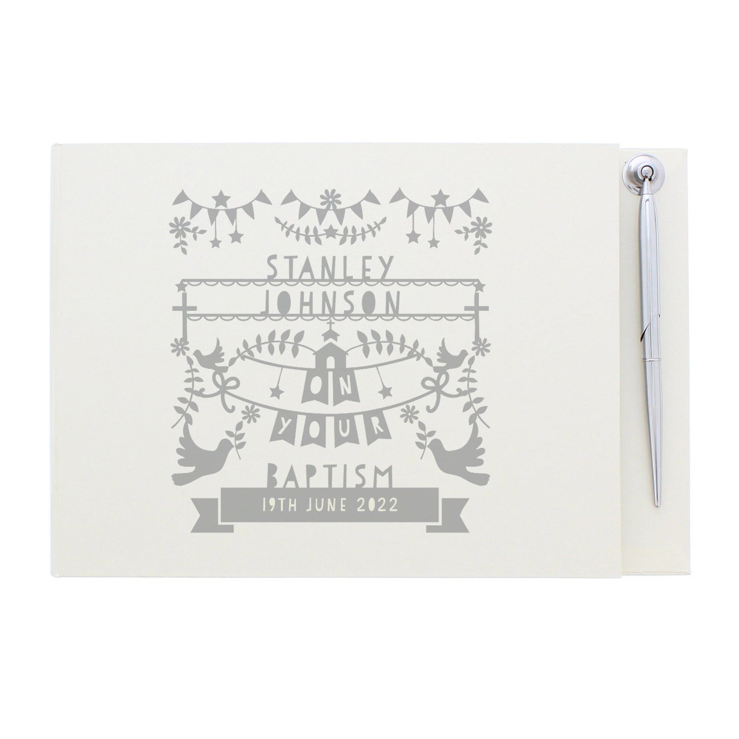 This personalised grey papercut style guest book makes a beautiful keepsake for any special occasion. The grey papercut design adds a touch of elegance.