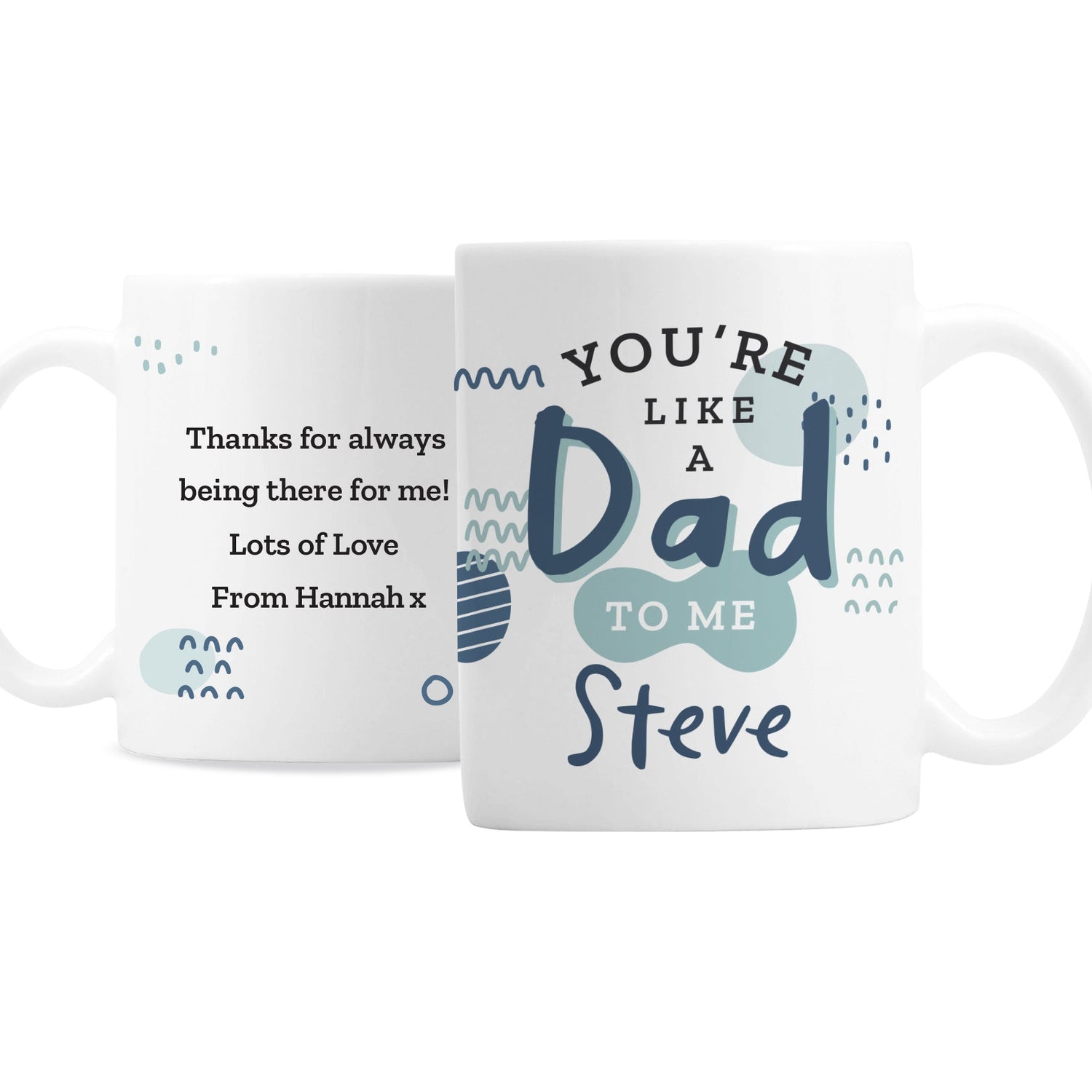 Personalise the front with a name up to 12 characters long. The reverse features the heartfelt message Youre Like A Dad to me, along with space for your own four-line personal message, each line up to 25 characters. This thoughtful gift is sure to be treasured.