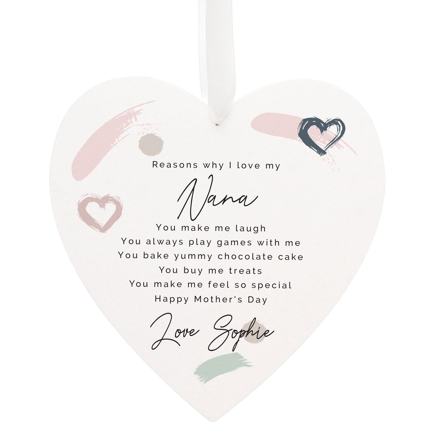 Personalise it with up to 8 lines of text, including a name or special title. The high-quality wooden heart comes complete with ribbon for hanging.