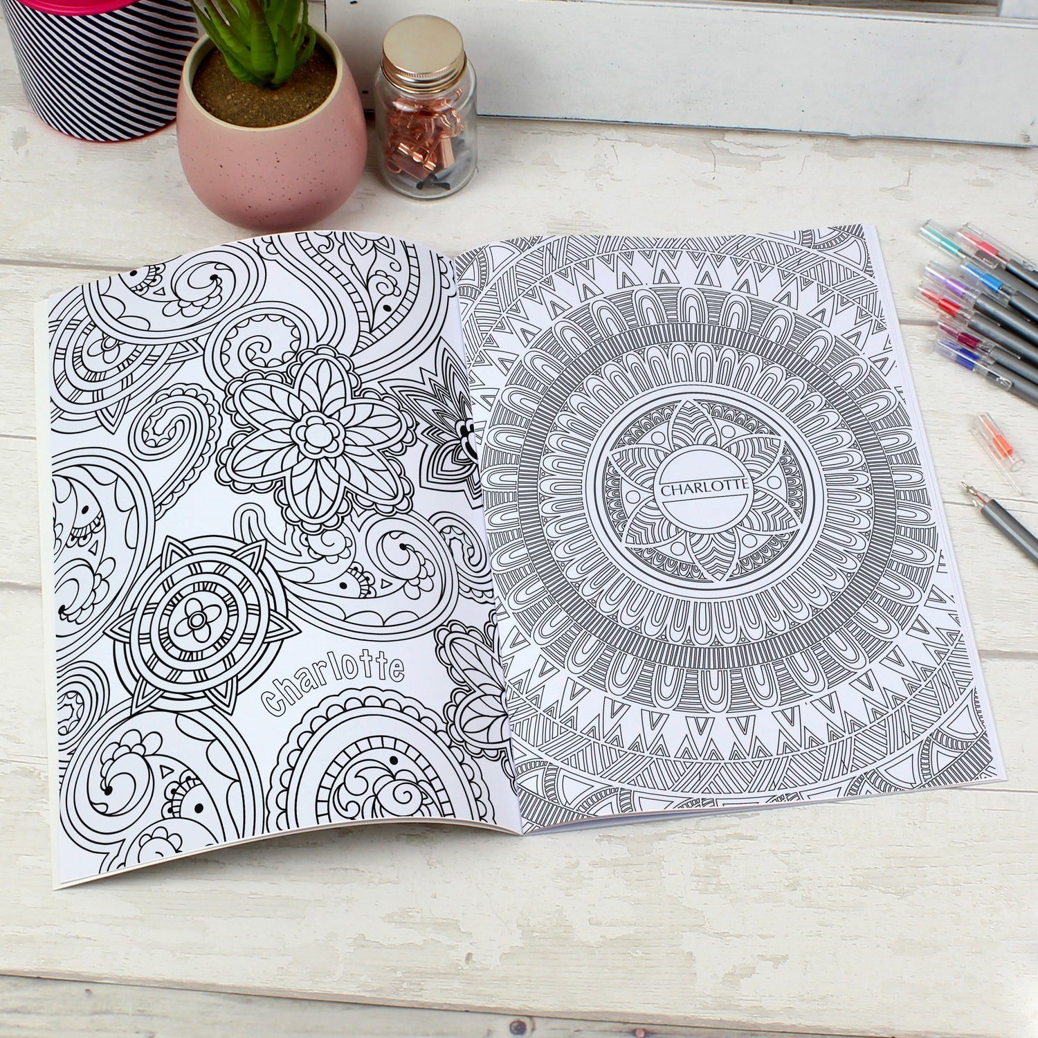 Unwind with this personalised mandala colouring book. A perfect gift for relaxation and creative fun, it features a name printed throughout.