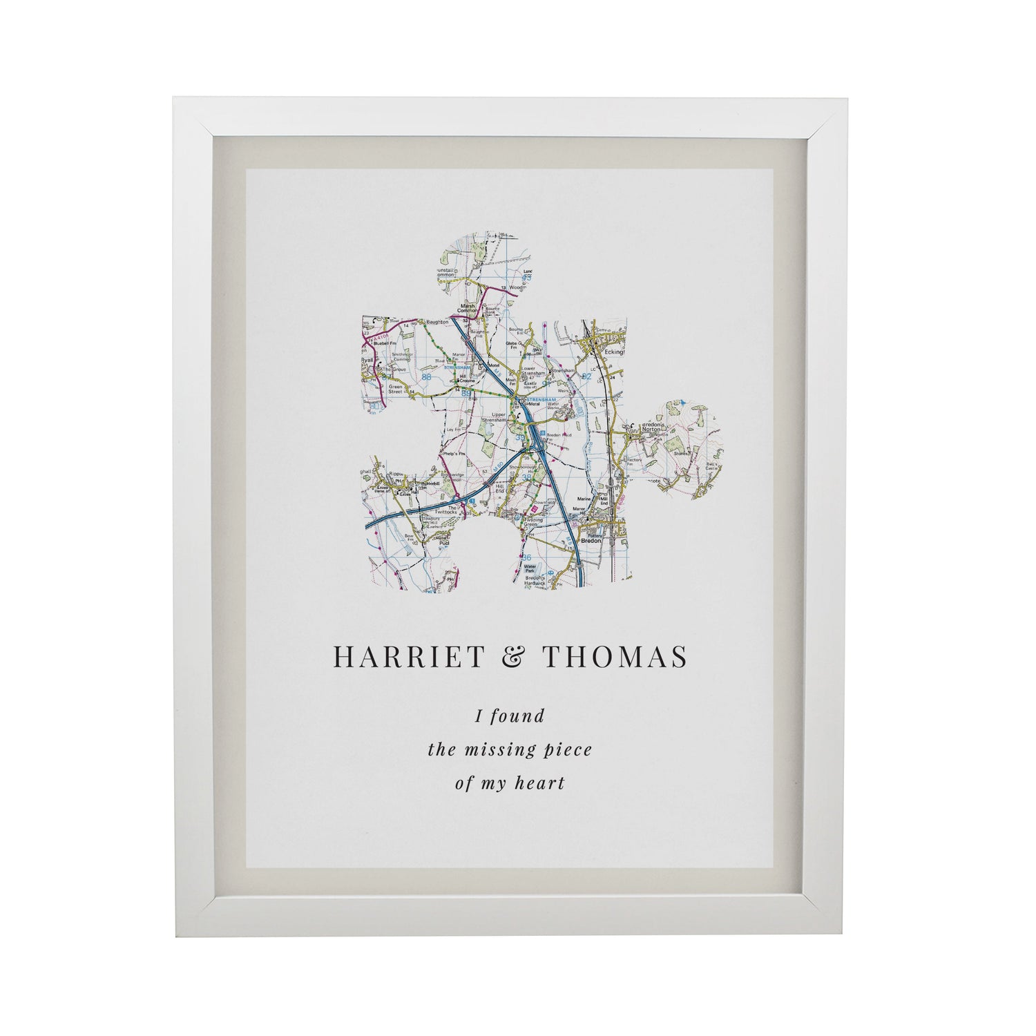 Personalised Present Day Map Puzzle Piece Framed Prints