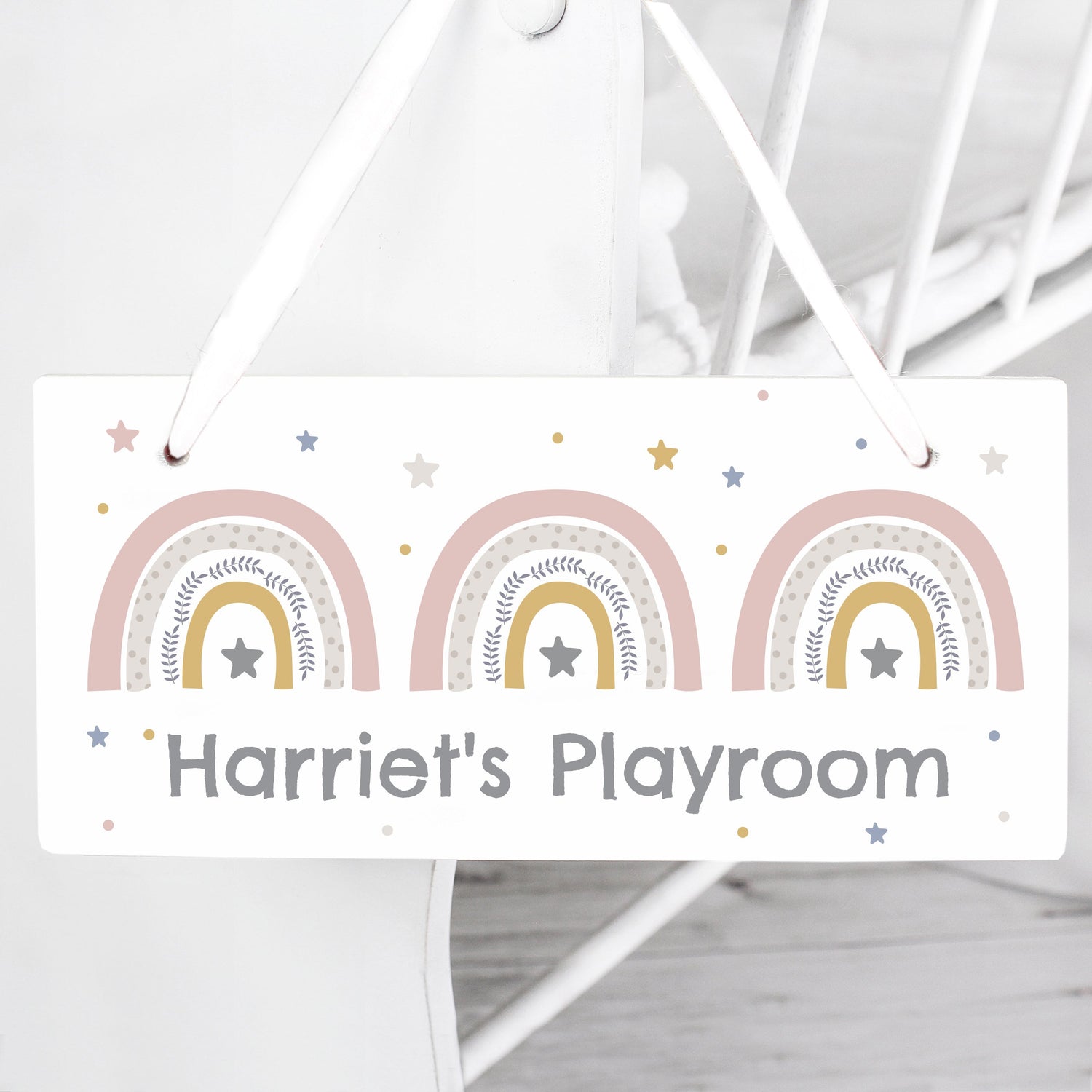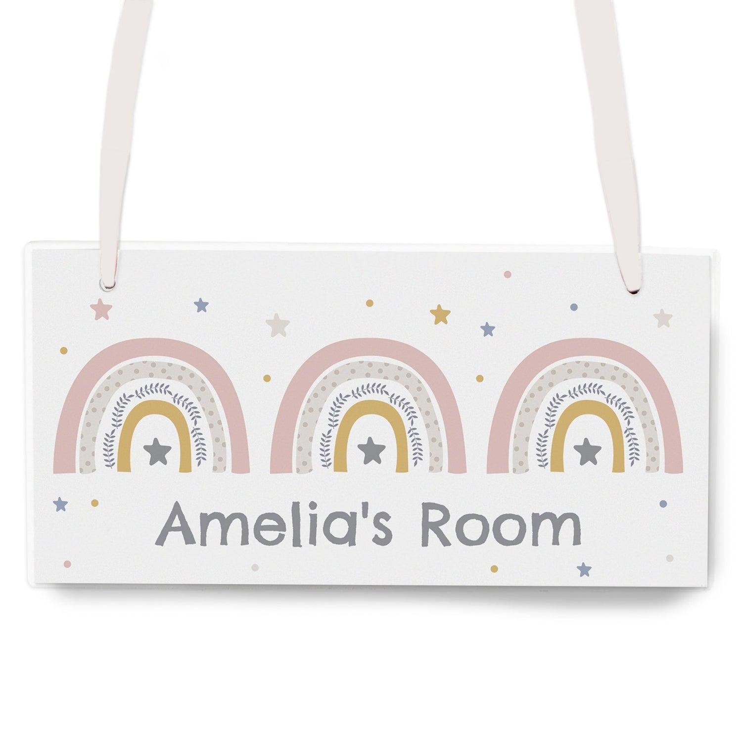 You can personalise it with up to 25 characters, making it extra special. Made from wood and complete with ribbon for easy hanging, this rainbow wooden sign is a delightful addition to your décor. A truly unique and colourful wooden sign for any occasion.