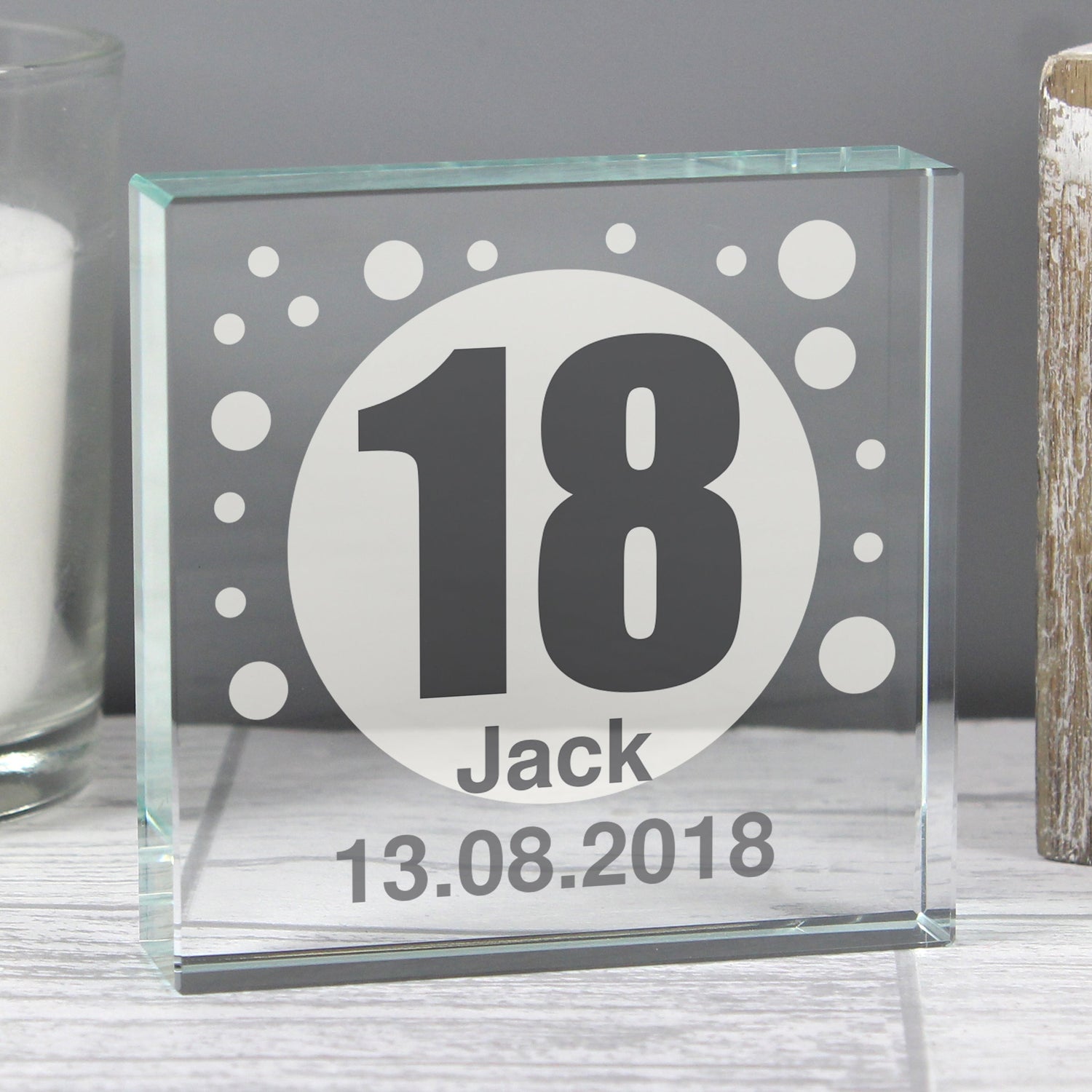 Personalise it with any age and a short message, up to 15 characters per line over two lines. The spots age crystal comes beautifully presented in a black gift box, ready for gifting.