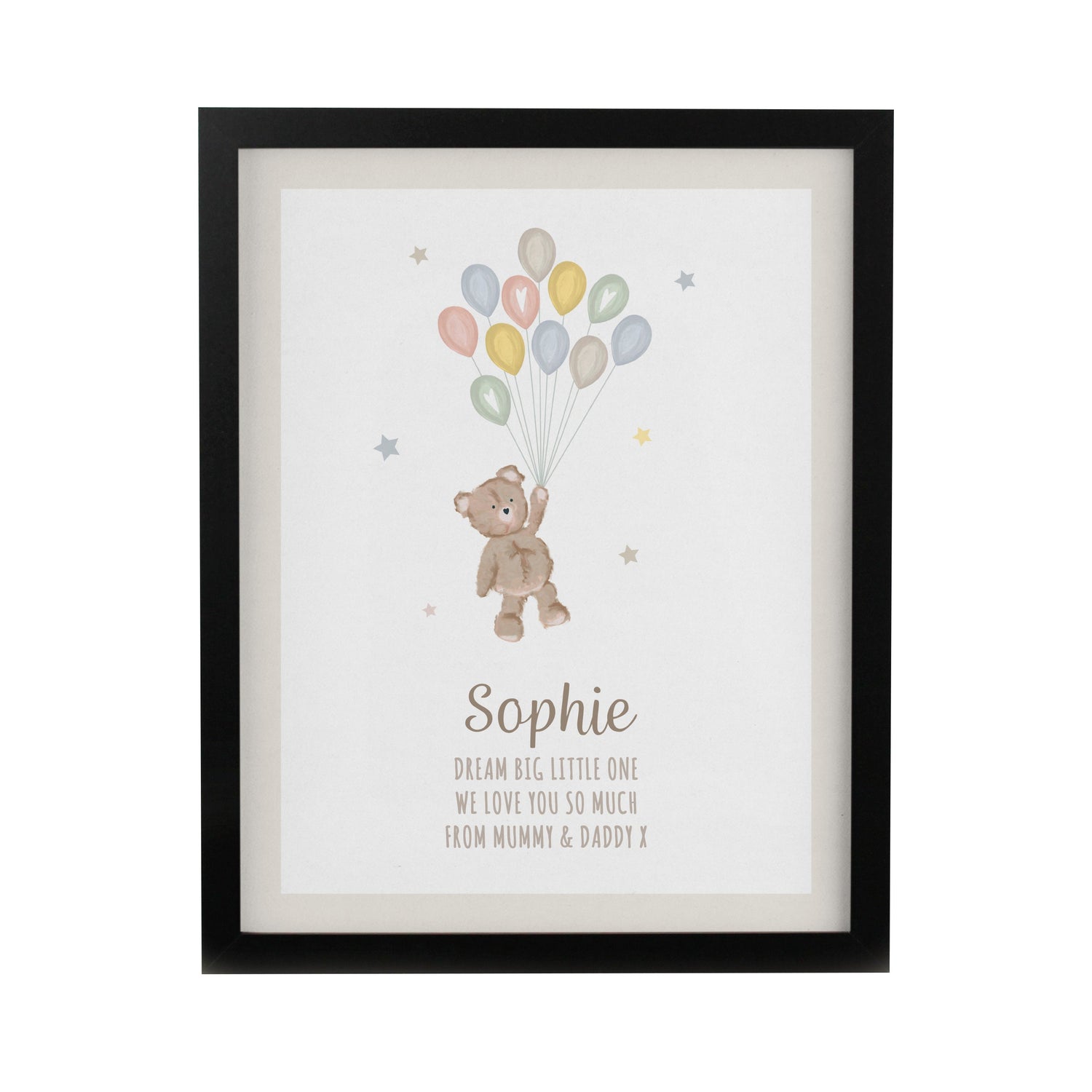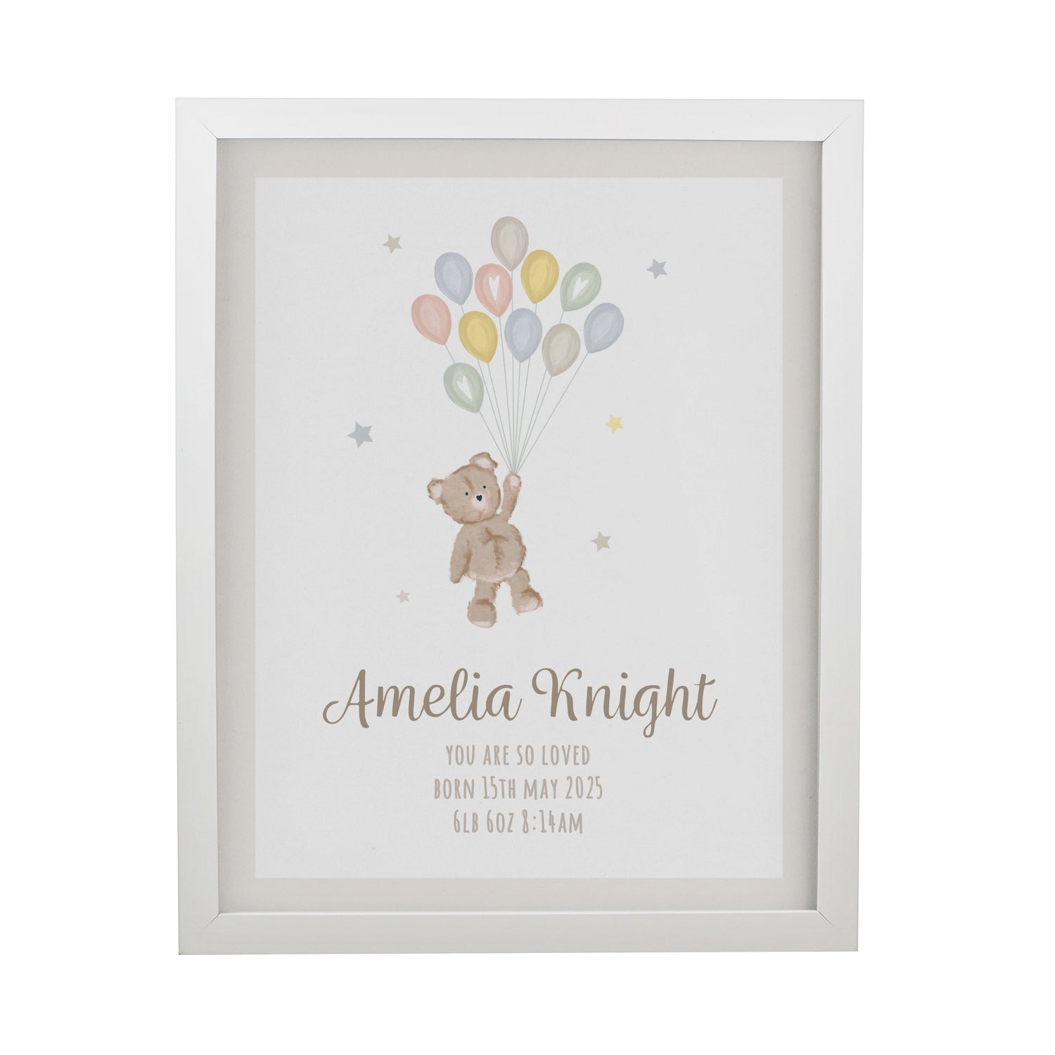 Add a charming touch to your little one's room with our Personalised Teddy Balloon Framed Prints. This delightful artwork features an adorable teddy bear and balloon design, perfect for creating a warm and inviting atmosphere in any child's bedroom.
