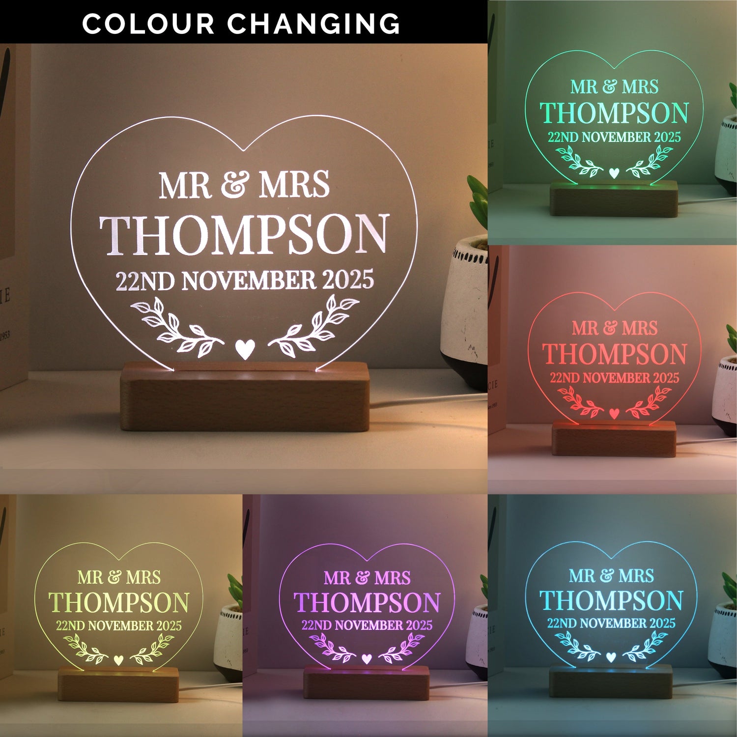 Personalised Heart LED Light for Couples
