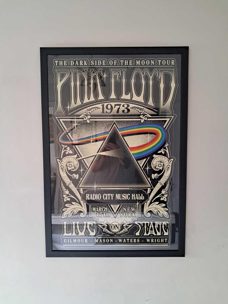 This rolled maxi poster showcases the iconic artwork from Pink Floyd's Dark Side Of The Moon tour at Radio City Music Hall in 1973. A high-resolution print on 150gsm gloss paper, it's an officially licensed piece of music history. Perfect for any Pink Floyd fan, this poster is a must-have piece of memorabilia from their legendary moon tour. Celebrate the band's legacy with this stunning artwork. Adding a touch of 1970s rock and roll to your home or office.